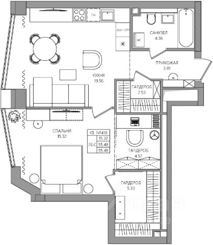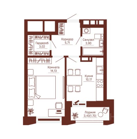 Уютное и продуманное пространство для комфортной жизни Кухня-гостиная 17 м² — идеальное место для отдыха, ужинов и небольших встреч; Собственный гардероб 3 м² — все вещи на своих местах, без лишней мебели в комнате; Большие окна с подоконником всего 40 см от пола наполняют интерьер светом и создают ощущение простора; Потолки 2,7 м — визуальный объем и свобода в каждом метре.