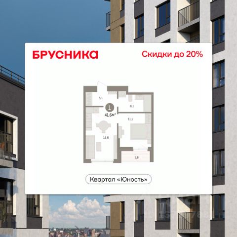 Однокомнатная квартира с предчистовой отделкой в ЖК "Квартал "Юность"" на 7 этаже. Общая площадь: 41.56 кв.м., жилая: 11.1 кв.м., площадь просторной кухни-гостиной: 16.6 кв.м. Все окна выходят на одну сторону. В квартире одна лоджия, один совмещенный санузел. Высота потолков 2.7 м. Квартира находится в корпусе 1. Дом монолитный, одноподъездный, высотой 16 этажей. На этаже 8 квартир. В подъезде 1 пассажирский и 1 грузовой лифт. Окончание строительства - 4 квартал 2028 года. Оформление сделки по договору долевого участия. Квартира с кухней-гостиной и одной спальней в квартале "Юность". Особенности планировки: вид во двор, лоджия. квартиры в нашей базе: ЮСТ01-Ж1.7.1. Квартал "Юность" расположен между улицами Лодыгина и Яблочкова. Обе названы в честь русских электротехников и изобретателей, которые занимались созданием электрических ламп. Это соседство вдохновило нас на метафору, которая легла в основу концепции проекта. В физике есть термин "суперпозиция" — наложение нескольких воздействий, приводящее к суммарному эффекту. Именно он лучше всего отражает идею проекта Брусники. "Юность" — это совокупность преимуществ в одном пространстве. Узнаваемая архитектура, уютные квартиры, безопасный двор, качественное озеленение — все эти элементы незаменимы и складываются в уникальный качественный продукт. Микрорайон Крохалева сочетает в себе черты делового центра и спокойного семейного квартала. Отсюда можно быстро добраться до всех деловых, транспортных и прогулочных зон Перми. Дорога до центра займёт 10-15 минут на автомобиле. Рядом, в пешей доступности уже есть необходимая социальная и коммерческая инфраструктура. "Юность" состоит из двух объёмов: вытянутого корпуса с разноуровневыми секциями и 16-этажной башни. Высота секций от 9 до 11 этажей делает дом комфортным для восприятия. Каркас дома выполнен из монолитного железобетона — это надежная и долговечная конструкция, которая прослужит не менее ста лет. Отделка фасада выполнена в светлой, природной гамме: белый, серо-коричневый и теплый бежевый цвета и выразительные вставки придают дому современный облик. Балконы и террасы на верхних этажах выступают связующими звеньями, они создают плавные переходы между секциями и создают дополнительную визуальную динамику. Уникальная форма участка позволила создать единую систему благоустройства с функциональными зонами: - Внешние пространства: Встречающая площадь с арт-объектом и кафе, рекреационная зона для отдыха и игр, прогулочный бульвар с торговыми павильонами все доступно горожанам. - Закрытый двор: Разделен на зоны для тихого отдыха и активных игр. Детские площадки для разных возрастов, включая экспериментальную для малышей. Родители могут наблюдать за детьми из-под навеса. - Озеленение: До 70% двора займут деревья, кустарники и цветы, высаженные с учетом календаря цветения для круглогодичной эстетики. Проект учитывает биоразнообразие, создавая среду для местной фауны.