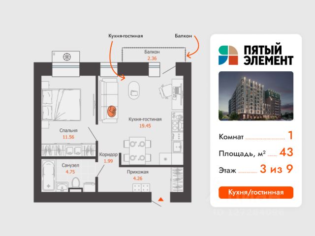 Продается 1-комнатная квартира в развитом районе Перми, площадью 45.00 кв. м. Квартира находится в новом жилом комплексе "Пятый Элемент" от федерального застройщика "Железно". Проект "Пятый Элемент" - это полноценный город в городе, где в пределах 15 минут есть всё для комфортной жизни. Хорошая транспортная доступность, близость к центру, собственная инфраструктура и настоящая атмосфера добрососедства объединились в один жилой комплекс, жизнь в котором течёт легко, свежо и с улыбкой. Каждый дом уникален: переменная высотность обеспечивает хорошую инсоляцию во дворах и квартирах, оригинально оформленные фасады с продуманными декоративными деталями не только притягивают взгляды, а также обеспечивают жителей теплом и тишиной. Никаких однотипных коробок и повторяющихся окон - только красивые виды и разнообразные планировки. Внутренний двор - это пространство, созданное с заботой о каждом возрасте. Именно поэтому территория комплекса "Пятый Элемент" разделена на несколько тематических зон, чтобы дети развлекались в ярких песочницах, подростки играли в футбол или занимались на турниках, а родители и пожилые жители могли отдохнуть под уютным навесом в тихой обстановке. Преимущества: - Собственная сервисная компания "Азбука"; - Технология будущего "Умный дом"; - Уютные лобби с дизайнерским оформлением; - Школа, детский сад, паркинг и другая инфраструктура в шаговой доступности. Успейте приобрести квартиру на выгодных условиях! Чтобы узнать подробности, обращайтесь за консультацией по телефону.