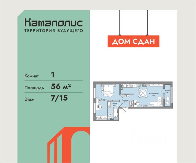 В новом жилом комплексе комфорт+ класса "Камаполис", расположенном на берегу реки Камы, продается 1-комнатная квартира площадью 42.00 кв. м. Квартира находится в 4 доме. Девелопер проекта - "Железно". Транспортная доступность • Трамвайная остановка всего в 3 минутах пешком; • 15 минут ходьбы до вокзала Пермь-2; • 10 минут на машине до центра города. Продуманный архитектурный проект Камаполис - это жизнь в соразмерной среде, спроектированной известными архитекторами. Жилые этажи "Камаполиса" строят из кирпича и по монолитной технологии, стены обладают высокой устойчивостью к нагрузкам, огнестойкостью, хорошей шумоизоляцией. Такие дома отлично сохраняют первоначальный внешний вид и радуют жителей долгие годы. Концептуальные лобби Концепция проекта продолжается интерьером лобби. Здесь преобладают естественные оттенки и текстуры, а мебель выполнена из экологичных материалов. Для удобства жителей созданы собственные колясочные и велосипедные, а для заботы о домашних любимцах предусмотрена лапомойка. Благоустройство Новый центр притяжения - всесезонный сквер, выполненный в тематике и стилистике пермского периода. Прогулочные зоны, игровые и спортивные площадки, релакс-зоны и места для творчества - все эти мультифункциональные пространства формируют сценарии для любого досуга. Любители особой приватности оценят соседские террасы - это специальные пространства для жителей, расположенные прямо на стилобате паркинга. Любуйтесь на реку, принимайте участие в совместных мероприятиях с соседями, с удовольствием работайте на свежем воздухе и приятно проводите время с близкими. Дополнительные преимущества • Собственный детский сад на 320 мест; • Стрит-ритейл с магазинами и кафе прямо на территории комплекса; • Управление домом через собственное мобильное приложение "Мажордом"; • 3 разных вида отделки на выбор покупателей.