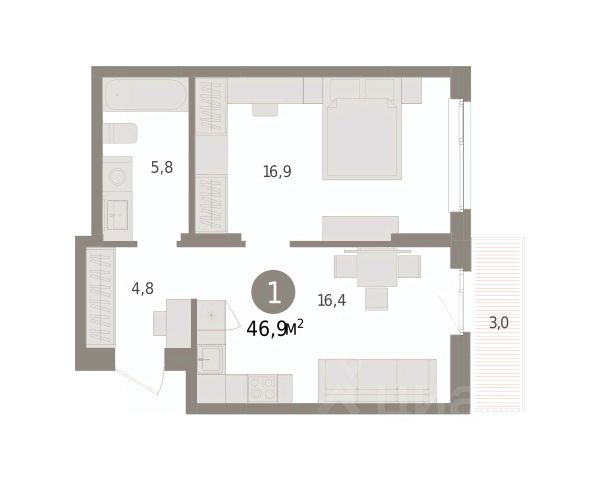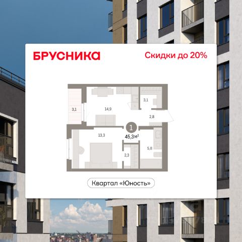 Однокомнатная квартира от застройщика с предчистовой отделкой в ЖК "Квартал "Юность"" на 3 этаже. Общая площадь: 35.25 кв.м., жилая: 12.2 кв.м., площадь просторной кухни-гостиной: 12.2 кв.м. Все окна выходят на одну сторону. В квартире один балкон, один совмещенный санузел. Высота потолков 2.7 м. Дом монолитный, многоподъездный, переменной этажности, от 9 до 16 этажей. Квартира находится в 5-й секции высотой 9 этажей в корпусе 2. На этаже 6 квартир. В подъезде 1 пассажирский и 1 грузовой лифт. Окончание строительства - 4 квартал 2028 года. Оформление сделки по договору долевого участия. Квартира с кухней-гостиной и одной спальней в квартале "Юность". Особенности планировки: балкон. квартиры в нашей базе: ЮСТ01-Ж6.3.4. Квартал "Юность" расположен между улицами Лодыгина и Яблочкова. Обе названы в честь русских электротехников и изобретателей, которые занимались созданием электрических ламп. Это соседство вдохновило нас на метафору, которая легла в основу концепции проекта. В физике есть термин "суперпозиция" — наложение нескольких воздействий, приводящее к суммарному эффекту. Именно он лучше всего отражает идею проекта Брусники. "Юность" — это совокупность преимуществ в одном пространстве. Узнаваемая архитектура, уютные квартиры, безопасный двор, качественное озеленение — все эти элементы незаменимы и складываются в уникальный качественный продукт. Микрорайон Крохалева сочетает в себе черты делового центра и спокойного семейного квартала. Отсюда можно быстро добраться до всех деловых, транспортных и прогулочных зон Перми. Дорога до центра займёт 10-15 минут на автомобиле. Рядом, в пешей доступности уже есть необходимая социальная и коммерческая инфраструктура. "Юность" состоит из двух объёмов: вытянутого корпуса с разноуровневыми секциями и 16-этажной башни. Высота секций от 9 до 11 этажей делает дом комфортным для восприятия. Каркас дома выполнен из монолитного железобетона — это надежная и долговечная конструкция, которая прослужит не менее ста лет. Отделка фасада выполнена в светлой, природной гамме: белый, серо-коричневый и теплый бежевый цвета и выразительные вставки придают дому современный облик. Балконы и террасы на верхних этажах выступают связующими звеньями, они создают плавные переходы между секциями и создают дополнительную визуальную динамику. Уникальная форма участка позволила создать единую систему благоустройства с функциональными зонами: - Внешние пространства: Встречающая площадь с арт-объектом и кафе, рекреационная зона для отдыха и игр, прогулочный бульвар с торговыми павильонами все доступно горожанам. - Закрытый двор: Разделен на зоны для тихого отдыха и активных игр. Детские площадки для разных возрастов, включая экспериментальную для малышей. Родители могут наблюдать за детьми из-под навеса. - Озеленение: До 70% двора займут деревья, кустарники и цветы, высаженные с учетом календаря цветения для круглогодичной эстетики. Проект учитывает биоразнообразие, создавая среду для местной фауны.