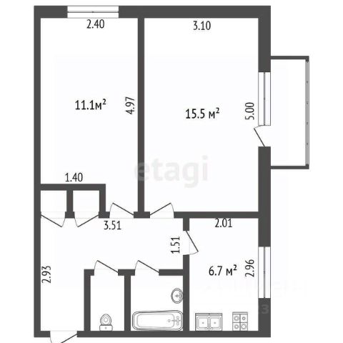 Включает в сeбя: гостиную комнату, кухню, коридор . Совмещенный санузел .