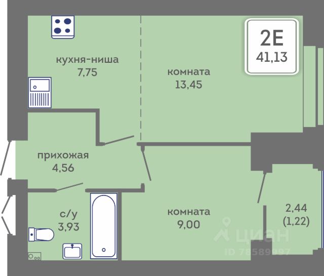 • ✅ Минимальная площадь: 34,4 м²