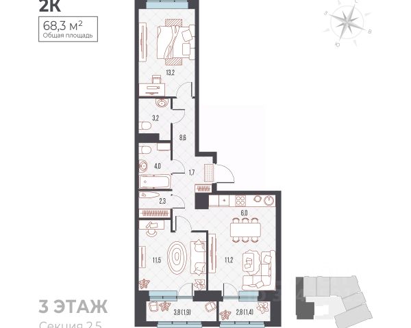 Предлагаем вашему вниманию уютную двухкомнатную квартиру в кирпичном доме с современной планировкой, отличающуюся комфортом и функциональностью пространства. Особенностью является просторная объединенная зона кухни-гостиной, позволяющая свободно расположить кухонную мебель, обеденную зону и зону отдыха одновременно. Просторная площадь кухни-гостиной позволяет воплотить любые интерьерные решения, создать индивидуальный дизайн и обустроить жилье согласно личным предпочтениям и потребностям семьи. Вторая комната предназначена для спальни либо кабинета, обеспечивая приватность и тихое пространство для сна или работы. В квартире есть вместительная кладовка. Сан узел совмещен, что является удобным решением для современного жилья. Квартира продается со встроенной кухней, газовой варочной поверхностью, эл.духовым шкафом, холодильником, стиральной машиной/автомат и мебелью в комнатах. Инфраструктура района включает необходимые удобства: близость расположения школы, детского сада, продуктовых магазинов, дом быта "Агат", зеленый сквер. Удобная транспортная доступность обеспечивается близостью остановок общественного транспорта. Этот вариант идеально подойдёт тем, кто ценит спокойствие и уединённость жилого района при наличии всего необходимого в непосредственной близости от дома. Два собственника, чистая продажа. Приглашаем на просмотр!