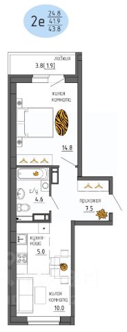 Общая площадь 50,2 кв.м., жилая 29,8 кв.м., кухня 10 кв.м., санузел совмещенный, коридор функциональный с возможностью установки хорошего шкафа-купе. Также квартира включает в себя застекленную лоджию около 3 кв.м., которая не входит в общую площадь квартиры.