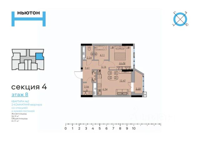 • ✅ Минимальная площадь: 51,7 м²
