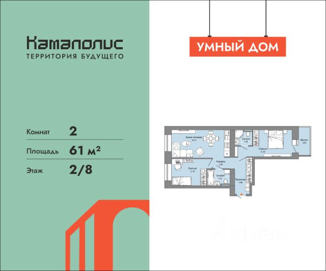 В новом жилом комплексе комфорт+ класса "Камаполис", расположенном на берегу реки Камы, продается 2-комнатная квартира площадью 63.00 кв. м. Квартира находится в 4 доме. Девелопер проекта - "Железно". Транспортная доступность • Трамвайная остановка всего в 3 минутах пешком; • 15 минут ходьбы до вокзала Пермь-2; • 10 минут на машине до центра города. Продуманный архитектурный проект Камаполис - это жизнь в соразмерной среде, спроектированной известными архитекторами. Жилые этажи "Камаполиса" строят из кирпича и по монолитной технологии, стены обладают высокой устойчивостью к нагрузкам, огнестойкостью, хорошей шумоизоляцией. Такие дома отлично сохраняют первоначальный внешний вид и радуют жителей долгие годы. Концептуальные лобби Концепция проекта продолжается интерьером лобби. Здесь преобладают естественные оттенки и текстуры, а мебель выполнена из экологичных материалов. Для удобства жителей созданы собственные колясочные и велосипедные, а для заботы о домашних любимцах предусмотрена лапомойка. Благоустройство Новый центр притяжения - всесезонный сквер, выполненный в тематике и стилистике пермского периода. Прогулочные зоны, игровые и спортивные площадки, релакс-зоны и места для творчества - все эти мультифункциональные пространства формируют сценарии для любого досуга. Любители особой приватности оценят соседские террасы - это специальные пространства для жителей, расположенные прямо на стилобате паркинга. Любуйтесь на реку, принимайте участие в совместных мероприятиях с соседями, с удовольствием работайте на свежем воздухе и приятно проводите время с близкими. Дополнительные преимущества • Собственный детский сад на 320 мест; • Стрит-ритейл с магазинами и кафе прямо на территории комплекса; • Управление домом через собственное мобильное приложение "Мажордом"; • 3 разных вида отделки на выбор покупателей. Продается 2-комнатная квартира в ипотеку в Перми.