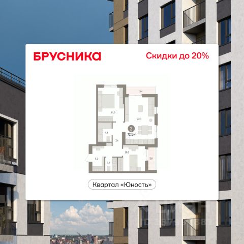 Просторная 2-комн. квартира с предчистовой отделкой в ЖК "Квартал "Юность"" на 3 этаже. Общая площадь: 52.08 кв.м., жилая: 24.5 кв.м., площадь просторной кухни-гостиной: 16.4 кв.м. Комнаты изолированные, все окна выходят на одну сторону. В квартире один балкон, один совмещенный санузел. Высота потолков 2.7 м. Дом монолитный, многоподъездный, переменной этажности, от 9 до 16 этажей. Квартира находится в 1-й секции высотой 16 этажей в корпусе 2. На этаже 8 квартир. В подъезде 1 пассажирский и 1 грузовой лифт. Окончание строительства - 4 квартал 2028 года. Оформление сделки по договору долевого участия. Квартира с кухней-гостиной и двумя спальнями в квартале "Юность". Особенности планировки: балкон, вид во двор, разнесённые спальни. квартиры в нашей базе: ЮСТ01-Ж2.3.8. Квартал "Юность" расположен между улицами Лодыгина и Яблочкова. Обе названы в честь русских электротехников и изобретателей, которые занимались созданием электрических ламп. Это соседство вдохновило нас на метафору, которая легла в основу концепции проекта. В физике есть термин "суперпозиция" — наложение нескольких воздействий, приводящее к суммарному эффекту. Именно он лучше всего отражает идею проекта Брусники. "Юность" — это совокупность преимуществ в одном пространстве. Узнаваемая архитектура, уютные квартиры, безопасный двор, качественное озеленение — все эти элементы незаменимы и складываются в уникальный качественный продукт. Микрорайон Крохалева сочетает в себе черты делового центра и спокойного семейного квартала. Отсюда можно быстро добраться до всех деловых, транспортных и прогулочных зон Перми. Дорога до центра займёт 10-15 минут на автомобиле. Рядом, в пешей доступности уже есть необходимая социальная и коммерческая инфраструктура. "Юность" состоит из двух объёмов: вытянутого корпуса с разноуровневыми секциями и 16-этажной башни. Высота секций от 9 до 11 этажей делает дом комфортным для восприятия. Каркас дома выполнен из монолитного железобетона — это надежная и долговечная конструкция, которая прослужит не менее ста лет. Отделка фасада выполнена в светлой, природной гамме: белый, серо-коричневый и теплый бежевый цвета и выразительные вставки придают дому современный облик. Балконы и террасы на верхних этажах выступают связующими звеньями, они создают плавные переходы между секциями и создают дополнительную визуальную динамику. Уникальная форма участка позволила создать единую систему благоустройства с функциональными зонами: - Внешние пространства: Встречающая площадь с арт-объектом и кафе, рекреационная зона для отдыха и игр, прогулочный бульвар с торговыми павильонами все доступно горожанам. - Закрытый двор: Разделен на зоны для тихого отдыха и активных игр. Детские площадки для разных возрастов, включая экспериментальную для малышей. Родители могут наблюдать за детьми из-под навеса. - Озеленение: До 70% двора займут деревья, кустарники и цветы, высаженные с учетом календаря цветения для круглогодичной эстетики. Проект учитывает биоразнообразие Продается 2-комнатная квартира в новостройке с отделкой в районе Свердловский в городе Пермь.