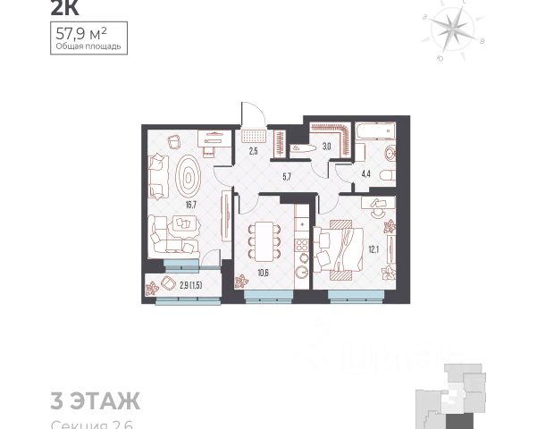 Продается 2-комнатная квартира 172 в жилом доме комфорт класса