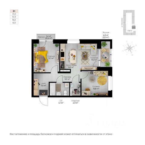 • ✅ Минимальная площадь: 55,8 м²