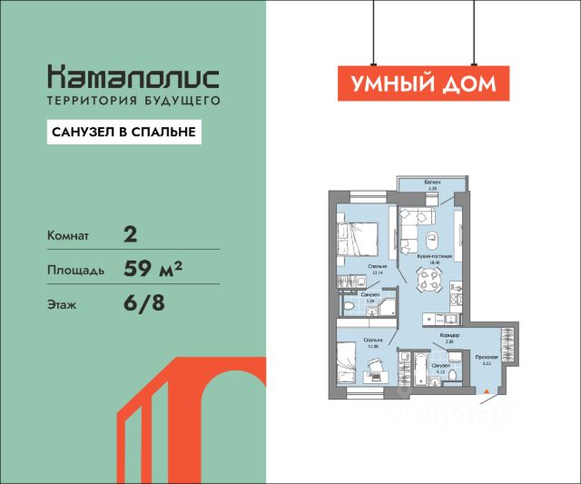 В новом жилом комплексе комфорт+ класса "Камаполис", расположенном на берегу реки Камы, продается 2-комнатная квартира площадью 58.00 кв. м. Квартира находится в 5 (1 этап) доме. Девелопер проекта - "Железно". Транспортная доступность • Трамвайная остановка всего в 3 минутах пешком; • 15 минут ходьбы до вокзала Пермь-2; • 10 минут на машине до центра города. Продуманный архитектурный проект Камаполис - это жизнь в соразмерной среде, спроектированной известными архитекторами. Жилые этажи "Камаполиса" строят из кирпича и по монолитной технологии, стены обладают высокой устойчивостью к нагрузкам, огнестойкостью, хорошей шумоизоляцией. Такие дома отлично сохраняют первоначальный внешний вид и радуют жителей долгие годы. Концептуальные лобби Концепция проекта продолжается интерьером лобби. Здесь преобладают естественные оттенки и текстуры, а мебель выполнена из экологичных материалов. Для удобства жителей созданы собственные колясочные и велосипедные, а для заботы о домашних любимцах предусмотрена лапомойка. Благоустройство Новый центр притяжения - всесезонный сквер, выполненный в тематике и стилистике пермского периода. Прогулочные зоны, игровые и спортивные площадки, релакс-зоны и места для творчества - все эти мультифункциональные пространства формируют сценарии для любого досуга. Любители особой приватности оценят соседские террасы - это специальные пространства для жителей, расположенные прямо на стилобате паркинга. Любуйтесь на реку, принимайте участие в совместных мероприятиях с соседями, с удовольствием работайте на свежем воздухе и приятно проводите время с близкими. Дополнительные преимущества • Собственный детский сад на 320 мест; • Стрит-ритейл с магазинами и кафе прямо на территории комплекса; • Управление домом через собственное мобильное приложение "Мажордом"; • 3 разных вида отделки на выбор покупателей.
