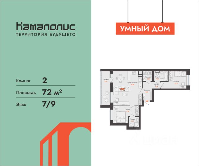 В новом жилом комплексе комфорт+ класса "Камаполис", расположенном на берегу реки Камы, продается 2-комнатная квартира площадью 58.00 кв. м. Квартира находится в 5 (1 этап) доме. Девелопер проекта - "Железно". Транспортная доступность • Трамвайная остановка всего в 3 минутах пешком; • 15 минут ходьбы до вокзала Пермь-2; • 10 минут на машине до центра города. Продуманный архитектурный проект Камаполис - это жизнь в соразмерной среде, спроектированной известными архитекторами. Жилые этажи "Камаполиса" строят из кирпича и по монолитной технологии, стены обладают высокой устойчивостью к нагрузкам, огнестойкостью, хорошей шумоизоляцией. Такие дома отлично сохраняют первоначальный внешний вид и радуют жителей долгие годы. Концептуальные лобби Концепция проекта продолжается интерьером лобби. Здесь преобладают естественные оттенки и текстуры, а мебель выполнена из экологичных материалов. Для удобства жителей созданы собственные колясочные и велосипедные, а для заботы о домашних любимцах предусмотрена лапомойка. Благоустройство Новый центр притяжения - всесезонный сквер, выполненный в тематике и стилистике пермского периода. Прогулочные зоны, игровые и спортивные площадки, релакс-зоны и места для творчества - все эти мультифункциональные пространства формируют сценарии для любого досуга. Любители особой приватности оценят соседские террасы - это специальные пространства для жителей, расположенные прямо на стилобате паркинга. Любуйтесь на реку, принимайте участие в совместных мероприятиях с соседями, с удовольствием работайте на свежем воздухе и приятно проводите время с близкими. Дополнительные преимущества • Собственный детский сад на 320 мест; • Стрит-ритейл с магазинами и кафе прямо на территории комплекса; • Управление домом через собственное мобильное приложение "Мажордом"; • 3 разных вида отделки на выбор покупателей.
