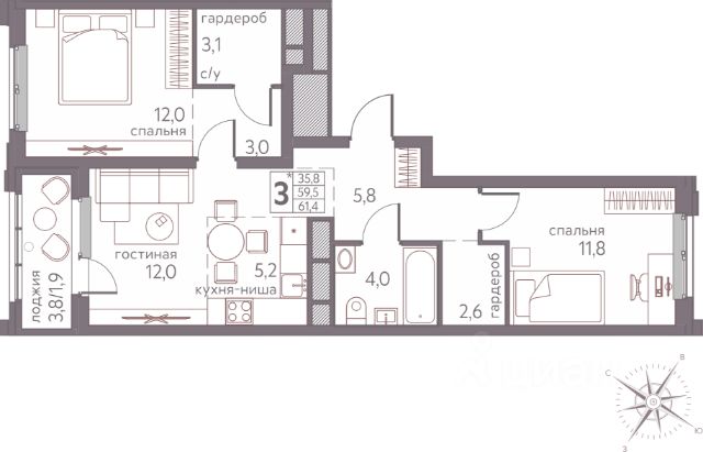 -Две гардеробных-Сан. узел с выделенным местом под стиральную машину-Спальня с балконом-Зона под кондиционер •••••••••••••••••• Клубный дом "SOBRANIE" предлагает квартиры, каждая из которых оснащена звукоизоляционной подложкой, а также технология полусухой стяжки по монолитной железобетонной плите обеспечивают дополнительную защиту от шума. В доме реализована лучевая разводка отопления, что решает проблему видимых стояков отопления внутри вашего жилища. А качественные современные радиаторы Royal обеспечивают отличный теплообмен. При остеклении будут использованы мультифункциональные двухкамерные стеклопакеты. Квартиры имеют увеличенную площадь и качественные межквартирные (210 мм) и межкомнатные (90 мм) перегородки из керамзитобетонных блоков, что обеспечивает высокий уровень шумоизоляции и свободу для реализации интерьерных решений. Способы покупки:— 100% оплата собственными средствами.— Ипотека от ведущих банков. — Ипотека от 2,9 % на период строительства в банке ДОМ.РФ.— Рассрочка на 12 месяцев беспроцентная с первоначальным взносом от 40%.— Материнский капитал можно использовать как первоначальный взнос самостоятельно или в том числе с собственными средствами для покупки квартиры в строящемся доме. •••••••••••••••••• Срок сдачи: 1 квартал 2026 г. •••••••••••••••••• Успейте забронировать свою квартиру!