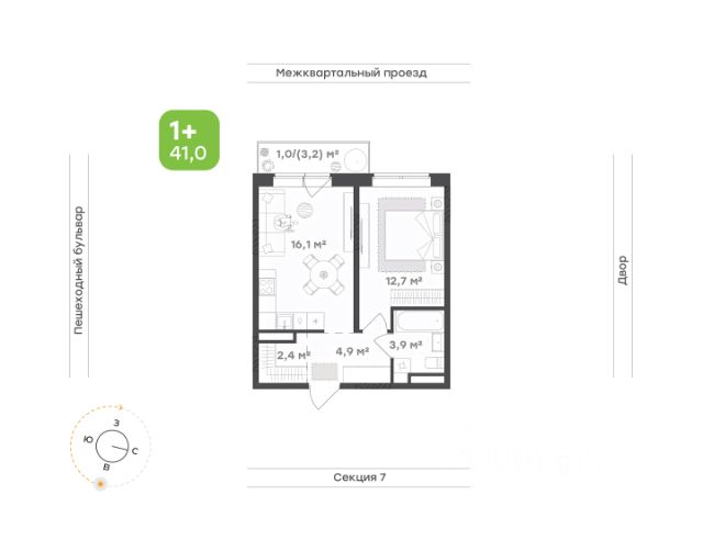 Евро-формат с продуманной планировкой — пространство для тех, кто живет один или в паре. Площадь 41,1 кв.м. с совмещенной кухней-гостиной, обособленной спальней, личной гардеробной и возможностью оборудовать рабочее место. Высота потолков 3 м. Кухня-гостиная 16,6 кв.м. — пространство для готовки, отдыха и ужинов. Отдельная спальня для спокойного отдыха. Личная гардеробная для хранения вещей. Балкон — дополнение к жилому пространству: для отдыха или сезонного хранения. Формат для комфортной жизни с учетом всех современных потребностей.