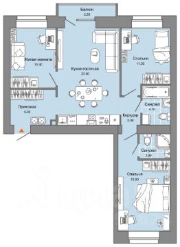 В новом жилом комплексе комфорт+ класса "Камаполис", расположенном на берегу реки Камы, продается 3-комнатная квартира площадью 90.00 кв. м. с предчистовой отделкой. Квартира находится в 2 доме. Девелопер проекта - "Железно". Транспортная доступность • Трамвайная остановка всего в 3 минутах пешком; • 15 минут ходьбы до вокзала Пермь-2; • 10 минут на машине до центра города. Продуманный архитектурный проект Камаполис - это жизнь в соразмерной среде, спроектированной известными архитекторами. Жилые этажи "Камаполиса" строят из кирпича и по монолитной технологии, стены обладают высокой устойчивостью к нагрузкам, огнестойкостью, хорошей шумоизоляцией. Такие дома отлично сохраняют первоначальный внешний вид и радуют жителей долгие годы. Концептуальные лобби Концепция проекта продолжается интерьером лобби. Здесь преобладают естественные оттенки и текстуры, а мебель выполнена из экологичных материалов. Для удобства жителей созданы собственные колясочные и велосипедные, а для заботы о домашних любимцах предусмотрена лапомойка. Благоустройство Новый центр притяжения - всесезонный сквер, выполненный в тематике и стилистике пермского периода. Прогулочные зоны, игровые и спортивные площадки, релакс-зоны и места для творчества - все эти мультифункциональные пространства формируют сценарии для любого досуга. Любители особой приватности оценят соседские террасы - это специальные пространства для жителей, расположенные прямо на стилобате паркинга. Любуйтесь на реку, принимайте участие в совместных мероприятиях с соседями, с удовольствием работайте на свежем воздухе и приятно проводите время с близкими. Дополнительные преимущества • Собственный детский сад на 320 мест; • Стрит-ритейл с магазинами и кафе прямо на территории комплекса; • Управление домом через собственное мобильное приложение "Мажордом"; • 3 разных вида отделки на выбор покупателей.