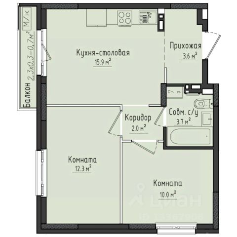 Современное и удобное пространство для одного или пары. Площадь 40,3 кв.м. с объединенной зоной кухни, столовой и гостиной, а также отдельная спальня. Высота потолков 3 м. Кухня-гостиная 19,7 кв.м. — пространство для готовки, отдыха и ужинов. Приватная спальня для сна и отдыха. Уютная прихожая с местом под систему хранения. Совмещенный санузел с зоной под стиральную машину. Балкон — дополнение к жилому пространству: для отдыха или сезонного хранения. Европланировка для тех, кто ценит открытое пространство и функциональность.