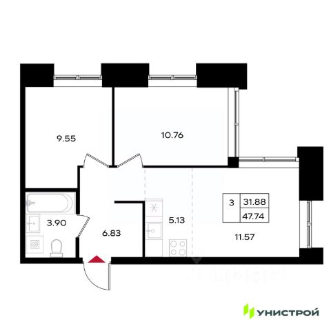 • ✅ Минимальная площадь: 47,7 м²