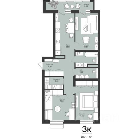 Высота потолков 2,75 3,05 м! Простор и свобода с первого взгляда.