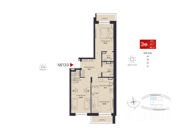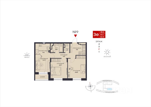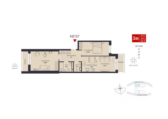 Продаётся 3-комнатная квартира в строящемся доме (Садовый, 73), срок сдачи: IV-кв. 2027, общей площадью 73.1 кв.м., на 2 этаже. Новый жилой комплекс "Миниполис Култаево Парк" от Специализированного застройщика "Миниполис Култаево Парк" расположен в с. Култаево по ул. Садовый бульвар.