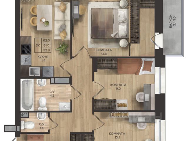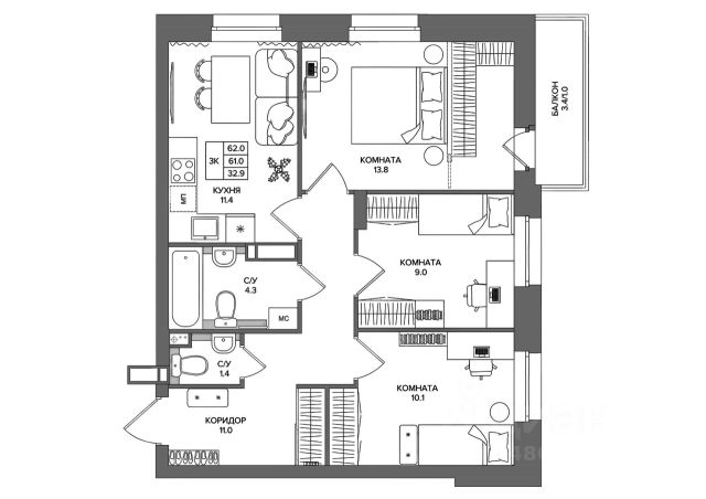 Три спальни: