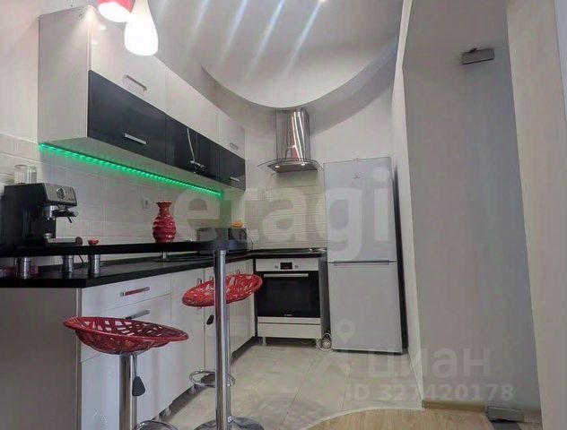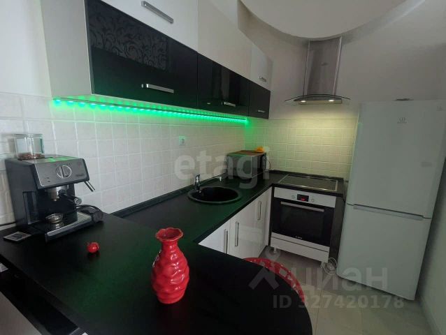 В кухне-гостиной -кухонный гарнитур производства Италии, премиум сегмента, со встроенной техникой (посудомоечная машина, электрический духовой шкаф, вытяжка, газовая панель - фирмы ARISTON). Столешница искусственный камень. Кондиционер MITSUBISHI.