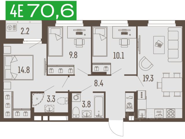 • ✅ Минимальная площадь: 61,2 м²