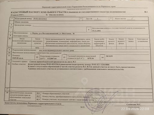 Продам зем участок под застройку нового дома , рядом с участоком проложен газ, рядом есть школа, два дет сада, магазины, автобусные остановки, ходят автобусы 14,74,67,47,12 до мкр Парковый 5 мин, я собственник, на участке 10 соток есть свет, дом в аварийном состояние, последние 3 года, использовался как дача в летний период , продажа с связи покупки кВ Остальные вопросы по телефону, если не ответил, пишите смс на Авито Кадастровый номер 59:01:4510608:139, торг