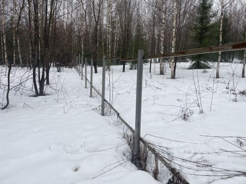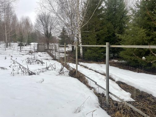 Участок со сторон соседей огорожен забором, также на участке смонтирован мет каркас и есть профнастил для своего забора.