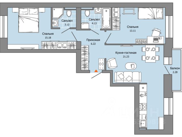В новом жилом комплексе комфорт+ класса "Камаполис", расположенном на берегу реки Камы, продается 2-комнатная квартира площадью 63.00 кв. м. Квартира находится в 4 доме. Девелопер проекта - "Железно". Транспортная доступность • Трамвайная остановка всего в 3 минутах пешком; • 15 минут ходьбы до вокзала Пермь-2; • 10 минут на машине до центра города. Продуманный архитектурный проект Камаполис - это жизнь в соразмерной среде, спроектированной известными архитекторами. Жилые этажи "Камаполиса" строят из кирпича и по монолитной технологии, стены обладают высокой устойчивостью к нагрузкам, огнестойкостью, хорошей шумоизоляцией. Такие дома отлично сохраняют первоначальный внешний вид и радуют жителей долгие годы. Концептуальные лобби Концепция проекта продолжается интерьером лобби. Здесь преобладают естественные оттенки и текстуры, а мебель выполнена из экологичных материалов. Для удобства жителей созданы собственные колясочные и велосипедные, а для заботы о домашних любимцах предусмотрена лапомойка. Благоустройство Новый центр притяжения - всесезонный сквер, выполненный в тематике и стилистике пермского периода. Прогулочные зоны, игровые и спортивные площадки, релакс-зоны и места для творчества - все эти мультифункциональные пространства формируют сценарии для любого досуга. Любители особой приватности оценят соседские террасы - это специальные пространства для жителей, расположенные прямо на стилобате паркинга. Любуйтесь на реку, принимайте участие в совместных мероприятиях с соседями, с удовольствием работайте на свежем воздухе и приятно проводите время с близкими. Дополнительные преимущества • Собственный детский сад на 320 мест; • Стрит-ритейл с магазинами и кафе прямо на территории комплекса; • Управление домом через собственное мобильное приложение "Мажордом"; • 3 разных вида отделки на выбор покупателей.