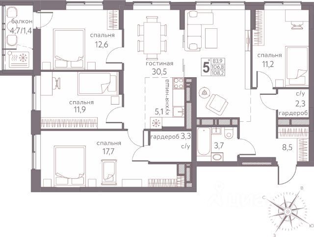 ТИХИЙ ЦЕНТР МОТОВИЛИХИНСКОГО РАЙОНА М/Р САДОВЫЙ ул.МАКАРЕНКО - УЛ.ЮРША ул.УИНСКАЯ. Продается просторная 3-комнатная квартира с большой кухней-гостиной в кирпичном доме 2008 года постройки. Это отличный вариант для проживания семьи с детьми (тихий центр Садового, первая линия). О квартире: Квартира теплая и светлая, общей площадью 112,9 м2, находится на 9 видовом этаже. окна выходят на запад и восток. Планировка очень удобная: - кухня - гостиная 32 м2 с выходом на балкон; - спальня 20,6 м2 с со своим санузлом, гардеробной и выходом на балкон; - две изолированные комнаты, оборудованные под детские по 12 м2 со своим санузлом и гардеробной; - коридор со шкафом-купе и кладовой; - гостевой санузел. Состояние квартиры хорошее. В квартире остаются встроенный кухонный гарнитур, встроенная бытовая техника (газовая варочная поверхность, электрический духовой шкаф, вытяжка, посудомоечная машина). О доме: Многоквартирный 100 % кирпичный дом 2008 года постройки, с удачным расположением в тихом и спокойном месте, огороженная территория со шлагбаумом, безопасный двор с детской и спортивной площадками. Для комфорта в подземном паркинге можно приобрести два машиноместа (имеются в наличии). Достойные соседи. Дом обслуживает ТСЖ Согласие, чистые подъезды (в настоящее время в подъездах производится косметический ремонт), ухоженный двор. Расположение дома удачное: В шаговой доступности торговый центр, детские сады, гимназия 2, лицей 10, заправка ЛУКОЙЛ, транспортная развязка позволяет добраться в любую точку города. Единственный собственник с момента постройки дома. Чистая продажа. Без долгов и обременений. Маткапитал не использовался.