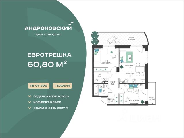 *Реклама. Застройщик ООО СЗ "КЕЛШ", ИНН 5902050200. Проектная декларация на сайте наш.дом.рф. При покупке квартиры в ЖК Андроновский на ул. 1-я Гиринская, 33, дарим кладовую. Акция действует 01.04.2026 - 30.04.2026. Количество кладовых, участвующих в акции, ограничено. Подробности акции уточняйте в офисе продаж застройщика. Рекламодатель может изменить сроки и условия акции. Не является публичной офертой.**Реклама. Застройщик ООО СЗ "КЕЛШ", ИНН 5902050200. Проектная декларация на сайте наш.дом.рф. В рекламе указана квартира 60, S=22,3 м2, цена 3 586