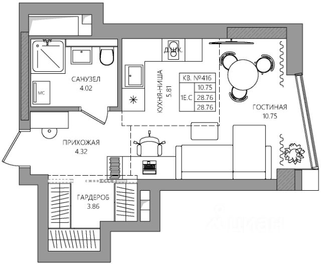 • ✅ Минимальная площадь: 28,8 м²
