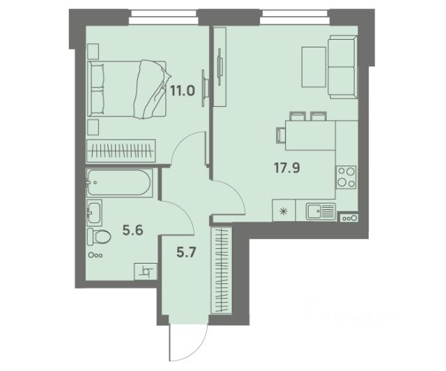 • ✅ Минимальная площадь: 25,7 м²
