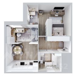 - Планировка: кабинет, открытая зона, зона кухни, зона отдыха, санузел, балкон.