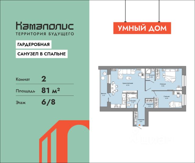 В новом жилом комплексе комфорт+ класса "Камаполис", расположенном на берегу реки Камы, продается 1-комнатная квартира площадью 32.00 кв. м. Квартира находится в 5 (1 этап) доме. Девелопер проекта - "Железно". Транспортная доступность • Трамвайная остановка всего в 3 минутах пешком; • 15 минут ходьбы до вокзала Пермь-2; • 10 минут на машине до центра города. Продуманный архитектурный проект Камаполис - это жизнь в соразмерной среде, спроектированной известными архитекторами. Жилые этажи "Камаполиса" строят из кирпича и по монолитной технологии, стены обладают высокой устойчивостью к нагрузкам, огнестойкостью, хорошей шумоизоляцией. Такие дома отлично сохраняют первоначальный внешний вид и радуют жителей долгие годы. Концептуальные лобби Концепция проекта продолжается интерьером лобби. Здесь преобладают естественные оттенки и текстуры, а мебель выполнена из экологичных материалов. Для удобства жителей созданы собственные колясочные и велосипедные, а для заботы о домашних любимцах предусмотрена лапомойка. Благоустройство Новый центр притяжения - всесезонный сквер, выполненный в тематике и стилистике пермского периода. Прогулочные зоны, игровые и спортивные площадки, релакс-зоны и места для творчества - все эти мультифункциональные пространства формируют сценарии для любого досуга. Любители особой приватности оценят соседские террасы - это специальные пространства для жителей, расположенные прямо на стилобате паркинга. Любуйтесь на реку, принимайте участие в совместных мероприятиях с соседями, с удовольствием работайте на свежем воздухе и приятно проводите время с близкими. Дополнительные преимущества • Собственный детский сад на 320 мест; • Стрит-ритейл с магазинами и кафе прямо на территории комплекса; • Управление домом через собственное мобильное приложение "Мажордом"; • 3 разных вида отделки на выбор покупателей.