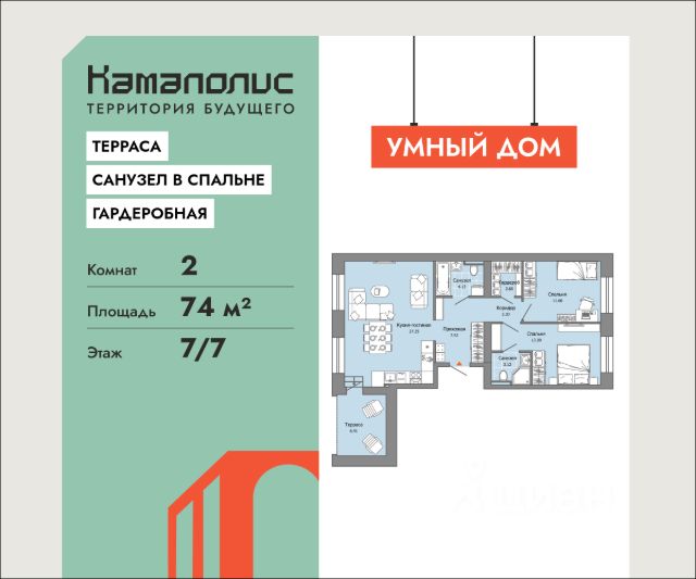 В новом жилом комплексе комфорт+ класса "Камаполис", расположенном на берегу реки Камы, продается 3-комнатная квартира площадью 82.00 кв. м. с предчистовой отделкой. Квартира находится в 3 доме. Девелопер проекта - "Железно". Транспортная доступность • Трамвайная остановка всего в 3 минутах пешком; • 15 минут ходьбы до вокзала Пермь-2; • 10 минут на машине до центра города. Продуманный архитектурный проект Камаполис - это жизнь в соразмерной среде, спроектированной известными архитекторами. Жилые этажи "Камаполиса" строят из кирпича и по монолитной технологии, стены обладают высокой устойчивостью к нагрузкам, огнестойкостью, хорошей шумоизоляцией. Такие дома отлично сохраняют первоначальный внешний вид и радуют жителей долгие годы. Концептуальные лобби Концепция проекта продолжается интерьером лобби. Здесь преобладают естественные оттенки и текстуры, а мебель выполнена из экологичных материалов. Для удобства жителей созданы собственные колясочные и велосипедные, а для заботы о домашних любимцах предусмотрена лапомойка. Благоустройство Новый центр притяжения - всесезонный сквер, выполненный в тематике и стилистике пермского периода. Прогулочные зоны, игровые и спортивные площадки, релакс-зоны и места для творчества - все эти мультифункциональные пространства формируют сценарии для любого досуга. Любители особой приватности оценят соседские террасы - это специальные пространства для жителей, расположенные прямо на стилобате паркинга. Любуйтесь на реку, принимайте участие в совместных мероприятиях с соседями, с удовольствием работайте на свежем воздухе и приятно проводите время с близкими. Дополнительные преимущества • Собственный детский сад на 320 мест; • Стрит-ритейл с магазинами и кафе прямо на территории комплекса; • Управление домом через собственное мобильное приложение "Мажордом"; • 3 разных вида отделки на выбор покупателей.
