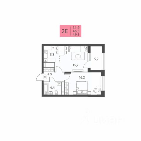 С квартирой готовыв подарокоставить встроенную мебель, технику и кондиционер.