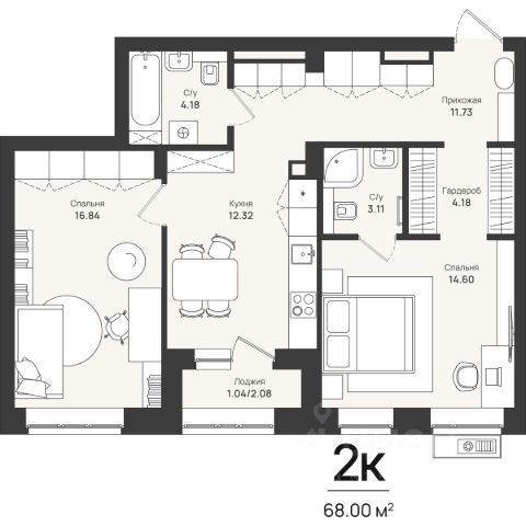 Установлена новая мебель и техника: 2-спальная кровать с матрацем, кухонный гарнитур, варочная индукционная панель, холодильник no frost, стиральная машина, шкаф, smart TV 81 см, комод, зеркало, вешалки, и тд.