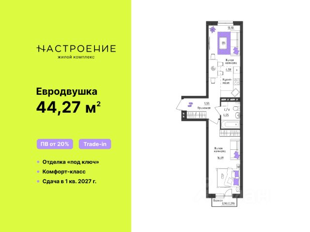 Продается 1- комнатная квартира 64 Ипотека 0,11% на 2 года!* Скидка 5% на квартиру с отделкой**. Квартира от 3 млн.руб. + кухня в подарок***. Нет программ без первоначального взноса! ПВ от 20%. ЖК Настроение — это три комфортных 4-этажных дома с эргономичными планировками и современными инженерными решениями. Настоящая находка для практичных людей! Вы платите только за своё жильё без переплаты за близость к центру. Дом из монолитного железобетонного каркаса, с отделкой из декоративной штукатурки. Современный архитектурный образ, лаконичные чёткие формы и французские балконы делают фасад стильным и гармоничным. Стильные подъезды выполнены по индивидуальному дизайну. Колясочная предусмотрена в 4 подъезде. Домофоны расположены в тёплых тамбурах. Витражное остекление входной группы. Мульти-двор для отдыха взрослых и детей. Предусмотрены площадки для игр и занятий спортом. Безопасность обеспечена ограждением и разноуровневым освещением придомовой территории. Подъезды оснащены системой видеонаблюдения. Здесь безопасно и комфортно даже в тёмное время суток. Своя газовая котельная позволяет сэкономить до 30% на оплате услуг за отопление и горячей воды. Жители дома не зависят от централизованного отопления и могут сами решить, когда включить обогрев. Современные инженерные решения: • Выполнена контурная шумоизоляция. Установлено малошумное насосное и вентиляционное оборудование. • Окна с 2-камерными стеклопакетами, с шумозащитными клапанами вентиляции. • Панельные радиаторы с терморегуляторами. Горизонтальная разводка отопления. • Система пожарной сигнализации во всех комнатах, кроме ванных и санузлов. Качественная отделка "под ключ": • Входная металлическая дверь • Ламинат 32 класса с плинтусом • Виниловые обои • Межкомнатные двери из эко-шпона • Белый матовый натяжной потолок • Электротехническая разводка с установленной электрофурнитурой • Телекоммуникационная разводка до квартиры (ТВ, интернет) В санузлах: • Керамическая плитка на полу • Керамическая плитка на стенах в мокрой зоне • Матовый натяжной потолок • Сантехника: ванна, унитаз, раковина, смесители. Полотенцесушитель. Инфраструктура сочетает в себе удобство городской жизни и близость к природным зонам. В шаговой доступности расположены продуктовые магазины. На первых этажах ЖК предусмотрено размещение коммерческих помещений. Дет. сады, школы, мед. учреждения расположены в 4-10 минутах транспортной доступности. Стадион Молния, пляж КамГЭС создают условия для отдыха и активного времяпрепровождения, а остановки автобусов обеспечивают транспортную связанность. В пяти минутах ходьбы от дома можно гулять по лесу, отдыхать, наслаждаясь свежим воздухом. Зимой здесь можно кататься на лыжах. ЖК Настроение пространство, где каждый найдёт своё вдохновение, а уют и комфорт станут неотъемлемой частью повседневной жизни. Здесь будет хорошо тем, кто желает наслаждаться гармоничной жизнью в современном комфортном доме среди живописных пейзажей. Срок сдачи: 4 кв. 2026 г. ___________________