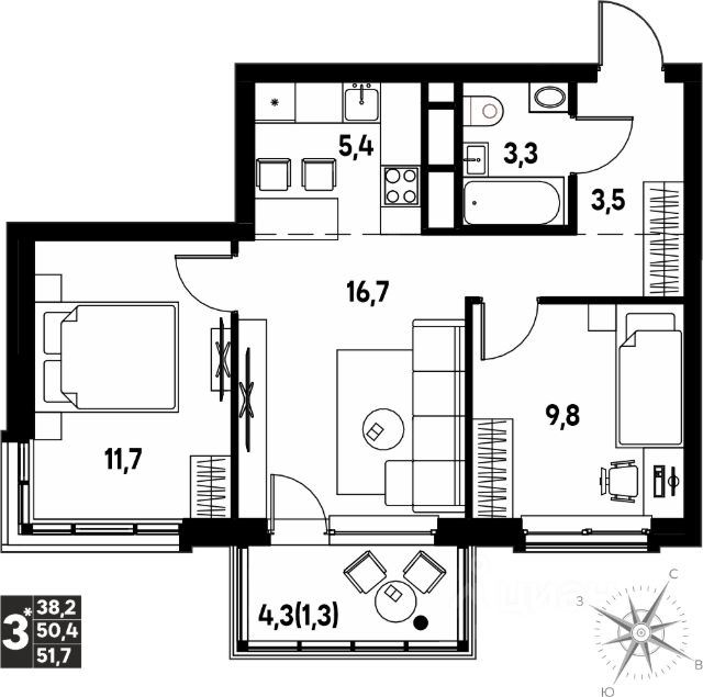 Продаётся студия в строящемся доме (Дягилева, 3), срок сдачи: I-кв. 2026, общей площадью 51.7 кв.м., на 15 этаже. Новый жилой комплекс "Клубный пригород "МЫ" от застройщика "Девелопмент-ЮГ" расположен по адресу д. Кондратово, пр-т Дягилева, 4.