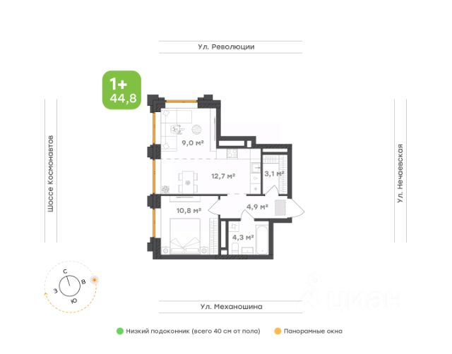 Простор, в который хочется возвращаться Мастер-спальня — личное пространство для перезагрузки и уединения; Удобная гардеробная: порядок без лишних шкафов; Отдельная постирочная — всё, что нужно для быта, скрыто от глаз; Окна с низким подоконником (всего 40 см от пола) наполняют квартиру светом и делают вид частью интерьера; Потолки 2,7 м — воздух, простор и архитектурная выразительность.
