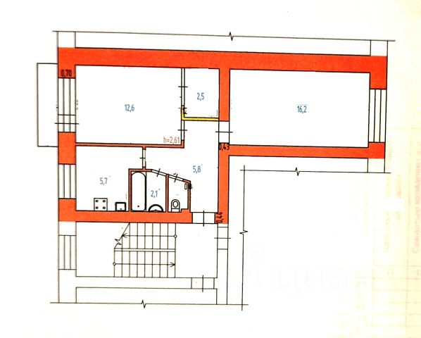 Санузел: раздельный (ванная 2,7 кв. м, туалет 1,3 кв. м), сантехника рабочая