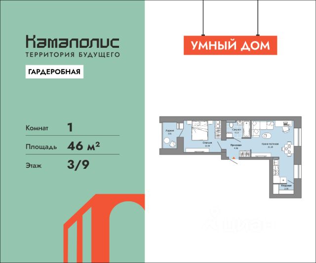 В новом жилом комплексе комфорт+ класса "Камаполис", расположенном на берегу реки Камы, продается 1-комнатная квартира площадью 46.00 кв. м. Квартира находится в 4 доме. Девелопер проекта - "Железно". Транспортная доступность • Трамвайная остановка всего в 3 минутах пешком; • 15 минут ходьбы до вокзала Пермь-2; • 10 минут на машине до центра города. Продуманный архитектурный проект Камаполис - это жизнь в соразмерной среде, спроектированной известными архитекторами. Жилые этажи "Камаполиса" строят из кирпича и по монолитной технологии, стены обладают высокой устойчивостью к нагрузкам, огнестойкостью, хорошей шумоизоляцией. Такие дома отлично сохраняют первоначальный внешний вид и радуют жителей долгие годы. Концептуальные лобби Концепция проекта продолжается интерьером лобби. Здесь преобладают естественные оттенки и текстуры, а мебель выполнена из экологичных материалов. Для удобства жителей созданы собственные колясочные и велосипедные, а для заботы о домашних любимцах предусмотрена лапомойка. Благоустройство Новый центр притяжения - всесезонный сквер, выполненный в тематике и стилистике пермского периода. Прогулочные зоны, игровые и спортивные площадки, релакс-зоны и места для творчества - все эти мультифункциональные пространства формируют сценарии для любого досуга. Любители особой приватности оценят соседские террасы - это специальные пространства для жителей, расположенные прямо на стилобате паркинга. Любуйтесь на реку, принимайте участие в совместных мероприятиях с соседями, с удовольствием работайте на свежем воздухе и приятно проводите время с близкими. Дополнительные преимущества • Собственный детский сад на 320 мест; • Стрит-ритейл с магазинами и кафе прямо на территории комплекса; • Управление домом через собственное мобильное приложение "Мажордом"; • 3 разных вида отделки на выбор покупателей.