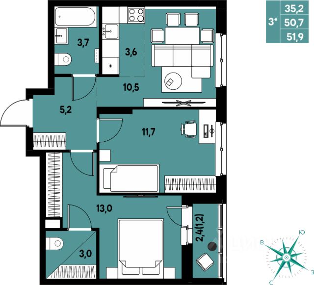 | 🔷 Минимальная стоимость жилья: | 3,9 млн ₽; |