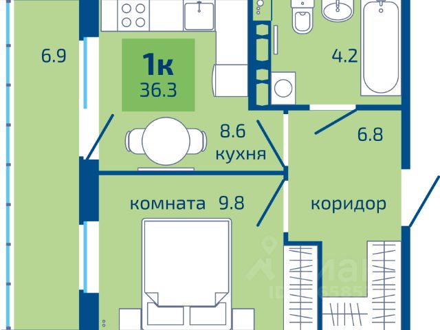 Продаётся 1-комнатная квартира в строящемся доме (Серебристая, 3), срок сдачи: III-кв. 2026, общей площадью 34.8 кв.м., на 3 этаже. Теплые кварталы "Погода" — это новый грандиозный проект от создателя Спортивного микрорайона "Ива", федерального застройщика "Девелопмент-Юг" .