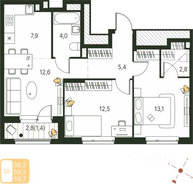 Продаётся студия в строящемся доме (Серебристая, 3А), срок сдачи: IV-кв. 2025, общей площадью 58.9 кв.м., на 9 этаже. Теплые кварталы "Погода" — это новый грандиозный проект от создателя Спортивного микрорайона "Ива", федерального застройщика "Девелопмент-Юг" .