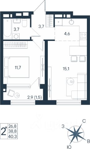 • ✓ В базе Циан 52 квартир-студий на 11 этаже в районе Индустриальный в городе Пермь