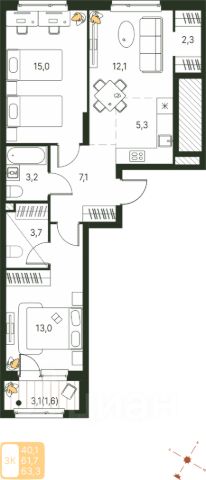 | 🔷 Средняя цена за м2: | 159,6 тыс. руб./м² |