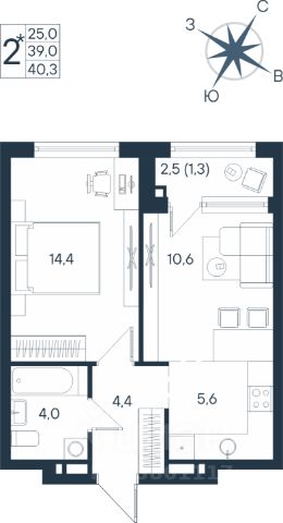 Квартира имеет две изолированные комнаты (16,2- 14,4);