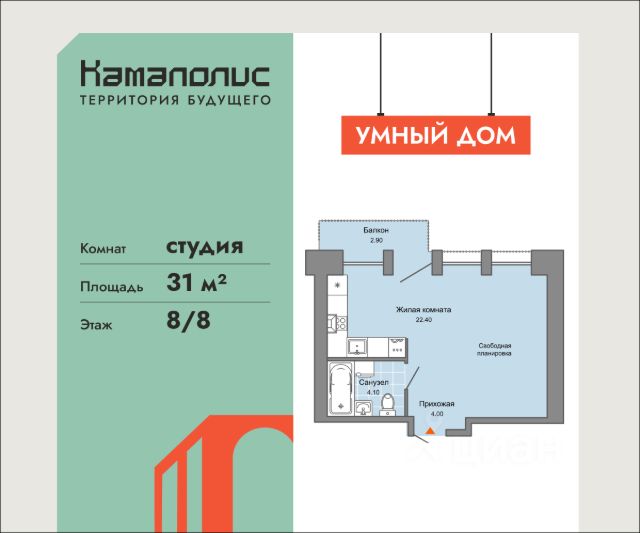 Особенность планировки - высокие потолки более 4 метров.Специально для тех, кто любит еще большее ощущение свободы и широты! В новом жилом комплексе комфорт+ класса "Камаполис", расположенном на берегу реки Камы, продается студия площадью 31.00 кв. м. с предчистовой отделкой. Квартира находится в 3 доме. Девелопер проекта - "Железно". Транспортная доступность • Трамвайная остановка всего в 3 минутах пешком; • 15 минут ходьбы до вокзала Пермь-2; • 10 минут на машине до центра города. Продуманный архитектурный проект Камаполис - это жизнь в соразмерной среде, спроектированной известными архитекторами. Жилые этажи "Камаполиса" строят из кирпича и по монолитной технологии, стены обладают высокой устойчивостью к нагрузкам, огнестойкостью, хорошей шумоизоляцией. Такие дома отлично сохраняют первоначальный внешний вид и радуют жителей долгие годы. Концептуальные лобби Концепция проекта продолжается интерьером лобби. Здесь преобладают естественные оттенки и текстуры, а мебель выполнена из экологичных материалов. Для удобства жителей созданы собственные колясочные и велосипедные, а для заботы о домашних любимцах предусмотрена лапомойка. Благоустройство Новый центр притяжения - всесезонный сквер, выполненный в тематике и стилистике пермского периода. Прогулочные зоны, игровые и спортивные площадки, релакс-зоны и места для творчества - все эти мультифункциональные пространства формируют сценарии для любого досуга. Любители особой приватности оценят соседские террасы - это специальные пространства для жителей, расположенные прямо на стилобате паркинга. Любуйтесь на реку, принимайте участие в совместных мероприятиях с соседями, с удовольствием работайте на свежем воздухе и приятно проводите время с близкими. Дополнительные преимущества • Собственный детский сад на 320 мест; • Стрит-ритейл с магазинами и кафе прямо на территории комплекса; • Управление домом через собственное мобильное приложение "Мажордом"; • 3 разных вида отделки на выбор покупателей.